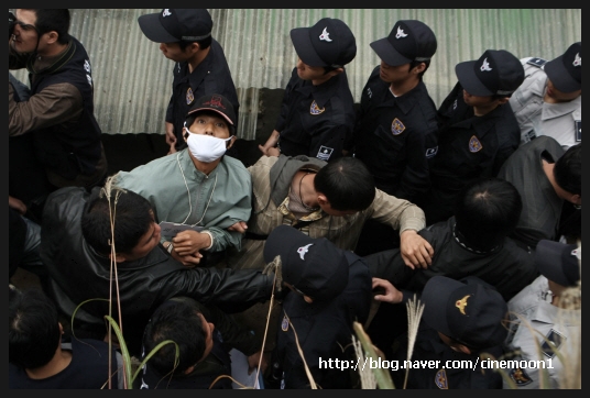 ↑ 공권력으로부터 보호받지 못하는 소시민. 그들은 결국 <괴물>에서처럼 공권력에 기대기보다 스스로 돕고 보호하고 해결한다.