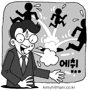 특히 회사에서 재채기를 했다가는 공연히 민망해진다. 회사원 윤혜지(25·서울 구로구 개봉동)씨는 "엘리베이터 안에서 기침이 나오는데 괜한 오해를 살까봐 꾹 참은 적이 있다"고 말했다. 이길재(42·경기 의정부시)씨는 "누군가 기침이라도 하면 동료들이 농담조로 '가까이 오지 말라'고 얘기한다"고 말했다.