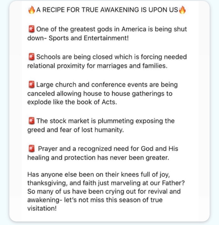 또 예수님이 십자가에 매달리시기 직전, 종려주일에 예루살렘 성전에 들어가서 상인들의 가판을 엎으시면서 하신 유명한 말씀 (이사야 선지자의 말씀 (사56:7) 인용)이 바로 ‘내 성전은 기도하는 집이다 (My house shall be called a house of prayer)’ 였다. 모두가 집에 있고 모든게 잠잠해진 이 시기에, 그 어느때보다도 하나님을 향한 찬양과 중보가 넘쳐남을 보고 경험한다. 실제로 덴마크의 코펜하겐 대학에서 막 진행된 연구에 의하면, 3월달에 전 세계적으로 24-7 계속된 기도 웹사이트가 엄청나게 늘었다고 한다. (관련글)